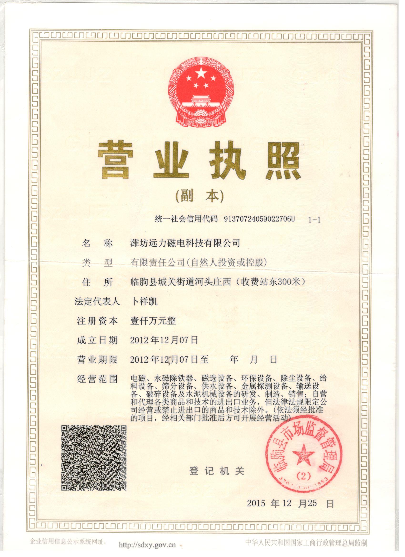 濰坊遠(yuǎn)力磁電科技有限公司專業(yè)生產(chǎn)除鐵器,電磁除鐵器的廠家,是集永磁除鐵器,永磁滾筒,磁選機,除塵器,尾礦干排科研開發(fā),工程設(shè)計,生產(chǎn)安裝,調(diào)試服務(wù)于一體的磁電設(shè)備生產(chǎn)企業(yè)。